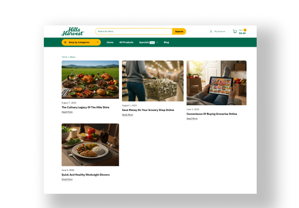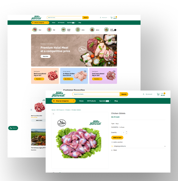 Hills Harvest is an Australian online grocery store built on Shopify, designed to offer customers a simple, reliable way to purchase fresh groceries online.